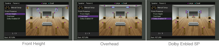 Yamaha provides multiple placement patterns for presence speakers that support Dolby Atmos® and DTS:X™, creating a sound field that’s ideal for your setup. Any layout can be appropriately reproduced, including the three-dimensional space of CINEMA DSP as well as Dolby Atmos and DTS:X.