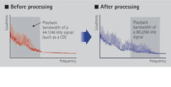 When music is encoded into a digitally compressed format like MP3, the frequency response suffers. The Compressed Music Enhancer from Yamaha employs sophisticated digital signal processing using exclusive algorithms to restore what was lost, so the music always sounds the way it should.