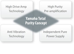 The Total Purity Concept, which Yamaha has been cultivating for many years, encompasses high drive amp technology, high purity preamplification, anti-vibration technology and independent pure power supplies. All models have fully discrete power amplifiers that help minimize distortion. They also adopt pure independent power supplies, allowing dedicated power supplies for the analog and digital circuitry to prevent digital noise from affecting analog circuitry. The anti-vibration heat sinks are designed to suppress vibration from transistors and sound pressure. Independent power supplies for the DACs are designed to further eliminate noise on certain models. Down to every detail, these AV receivers are designed with full emphasis on the highest possible sound quality.