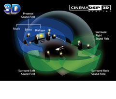 CINEMA DSP 3D provides a wide, high and dense sound field. HD Audio format decoding lets you enjoy HD Audio sources. Virtual Presence Speaker delivers three-dimensional sound without the actual use of presence speakers.