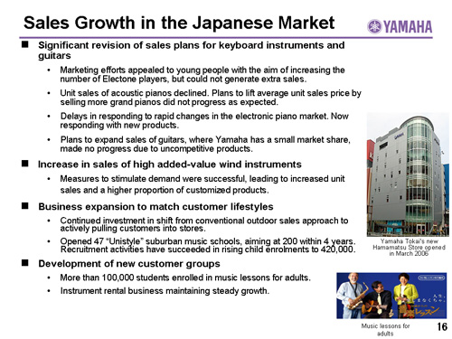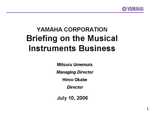 YAMAHA CORPORATION Briefing on the Musical Instruments Business