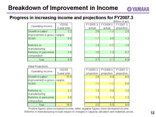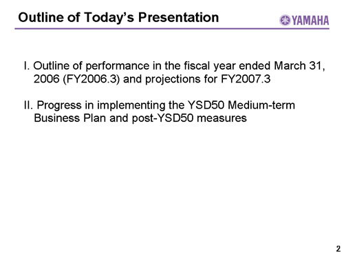 In this report, the divs forecast for the Company's future performance have been calculated on the basis of information currently available to Yamaha and the Yamaha Group. Forecasts are, therefore, subject to risks and uncertainties. Accordingly, actual performance may differ greatly from our predictions depending on changes in operating and economic conditions, demand trends, and the value of key currencies, such as the U.S. dollar and the euro.