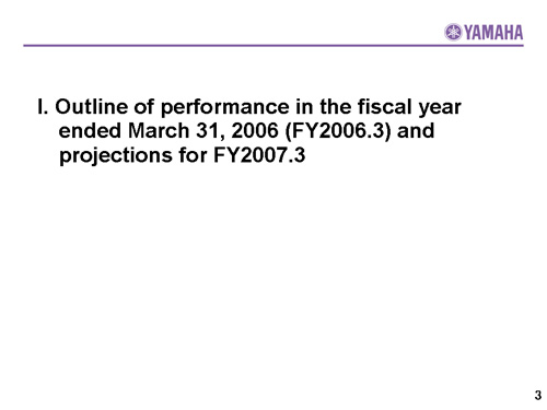 I. Outline of performance in the fiscal year ended March 31, 2006 (FY2006.3) and projections for FY2007.3