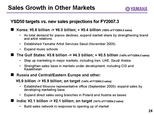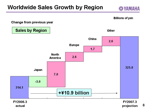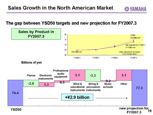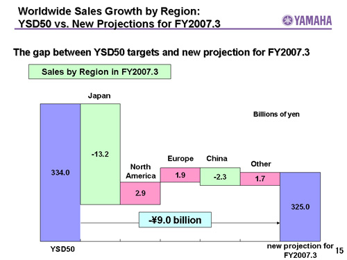 Worldwide Sales Growth by Region:YSD50 vs. New Projections for FY2007.3