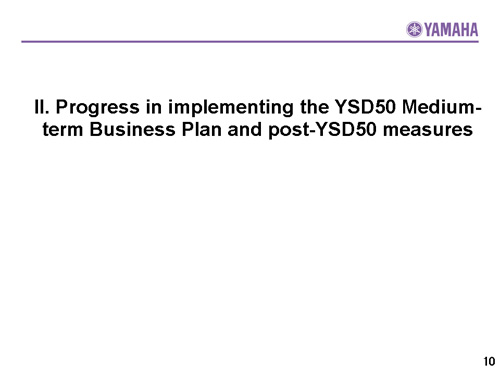 II.Progress in implementing the YSD50 Medium-term Business Plan and post-YSD50 measures