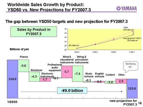 Worldwide Sales Growth by Product:YSD50 vs. New Projections for FY2007.3