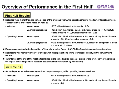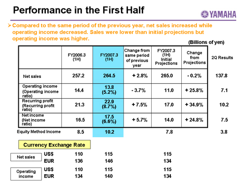 Analyst and Investor Briefing on the First Half of the Fiscal Year Ending March 31, 2007 (FY2007.3)