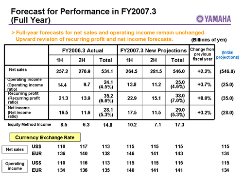 Forecast for Performance by Segment in FY2007.3 (Full Year)