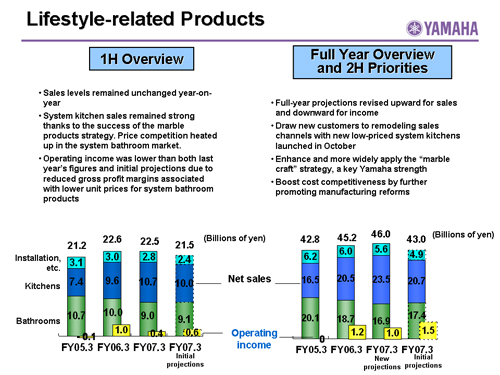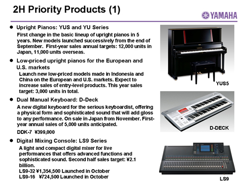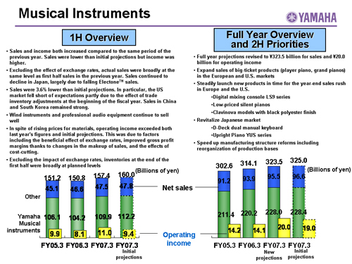 In this report, the divs forecast for the Company's future performance have been calculated on the basis of information currently available to Yamaha and the Yamaha Group. Forecasts are, therefore, subject to risks and uncertainties. Accordingly, actual performance may differ greatly from our predictions depending on changes in operating and economic conditions, demand trends, and the value of key currencies, such as the U.S. dollar and the euro.
