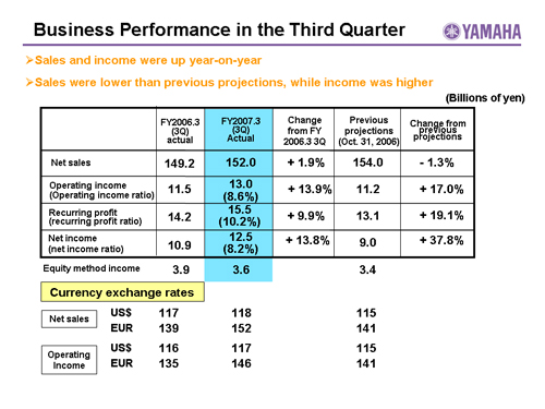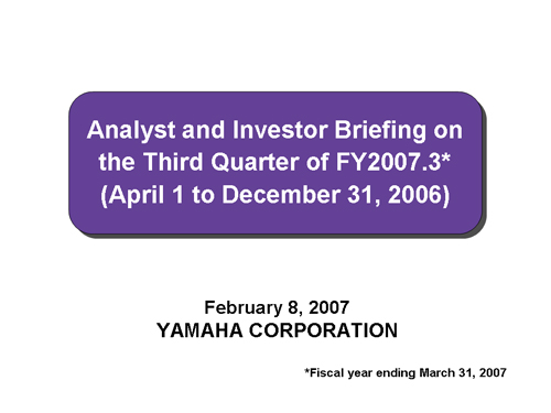 Analyst and Investor Briefing on the Third Quarter of FY2007.3* (April 1 to December 31, 2006)