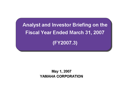 Analyst and Investor Briefing on the Fiscal Year Ended March 31, 2007
