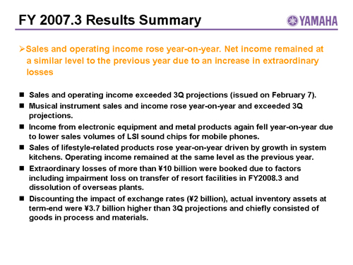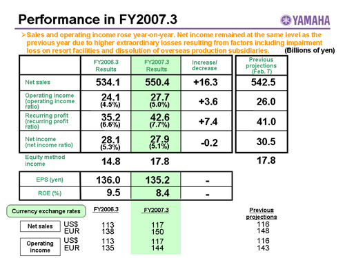 Performance in FY2007.3