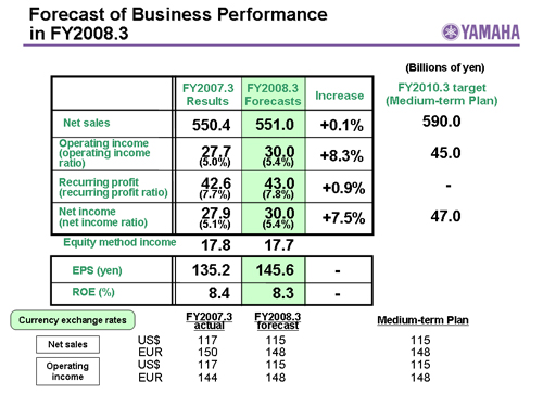 Forecast of Business Performance in FY2008.3
