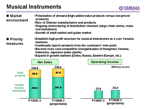 In this report, the divs forecast for the Company's future performance have been calculated on the basis of information currently available to Yamaha and the Yamaha Group. Forecasts are, therefore, subject to risks and uncertainties. Accordingly, actual performance may differ greatly from our predictions depending on changes in operating and economic conditions, demand trends, and the value of key currencies, such as the U.S. dollar and the euro.