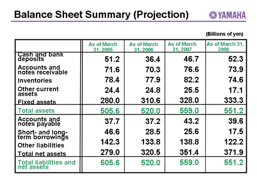 Balance Sheet Summary (Projection)