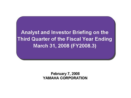 Analyst and Investor Briefing on the Third Quarter of the Fiscal Year Ending March 31, 2008 (FY2008.3)
