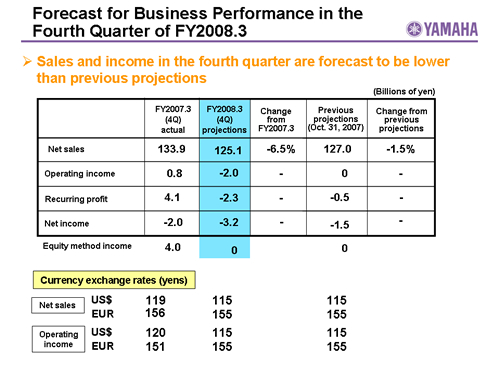 Forecast for Business Performance in the Fourth Quarter of FY2008.3