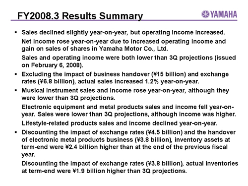 FY2008.3 Results Summary