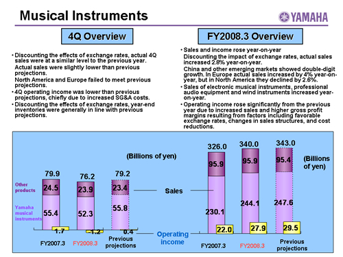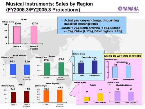 Musical Instruments:Sales by Region(FY2008.3/FY2009.3 Projections)