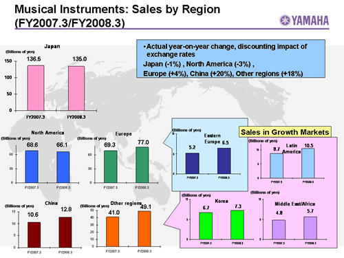 Musical Instruments: Sales by Region (FY2007.3/FY2008.3)