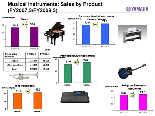 Musical Instruments: Sales by Product (FY2007.3/FY2008.3)