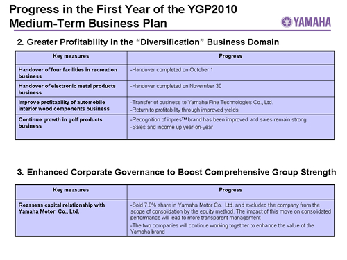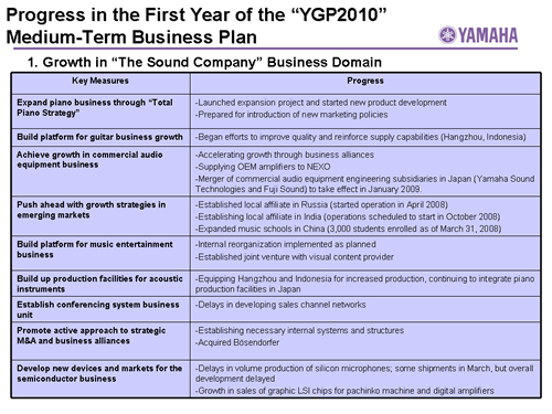 Progress in the First Year of the YGP2010 Medium-Term Business Plan