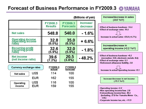 Forecast of Business Performance in FY2009.3