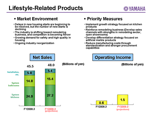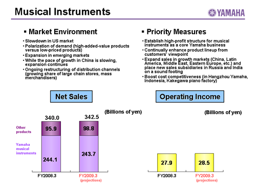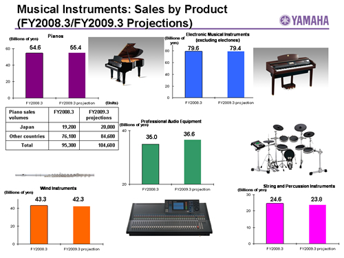 Musical Instruments:Sales by Product(FY2008.3/FY2009.3 Projections)