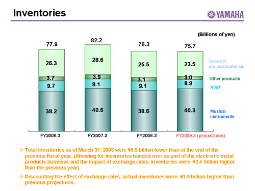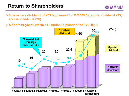 In this report, the divs forecast for the Company's future performance have been calculated on the basis of information currently available to Yamaha and the Yamaha Group. Forecasts are, therefore, subject to risks and uncertainties. Accordingly, actual performance may differ greatly from our predictions depending on changes in operating and economic conditions, demand trends, and the value of key currencies, such as the U.S. dollar and the euro.