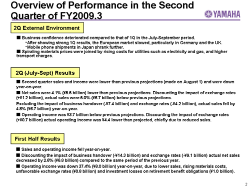 Overview of Performance in the Second Quarter of FY2009.3
