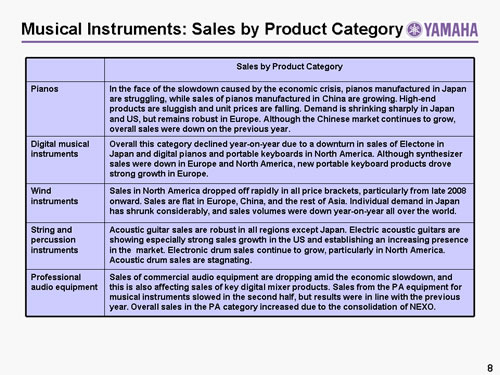 Musical Instruments: Sales by Product Category (FY2010.3 Projections)