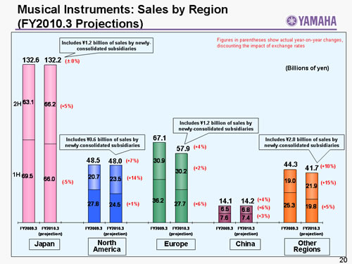 Musical Instruments: Sales by Region (FY2010.3 Projections)