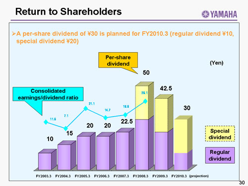 In this report, the divs forecast for the Company's future performance have been calculated on the basis of information currently available to Yamaha and the Yamaha Group. Forecasts are, therefore, subject to risks and uncertainties. Accordingly, actual performance may differ greatly from our predictions depending on changes in operating and economic conditions, demand trends, and the value of key currencies, such as the U.S. dollar and the euro.