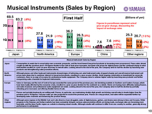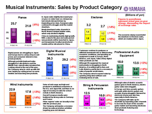 In this report, the divs forecast for the Company's future performance have been calculated on the basis of information currently available to Yamaha and the Yamaha Group. Forecasts are, therefore, subject to risks and uncertainties. Accordingly, actual performance may differ greatly from our predictions depending on changes in operating and economic conditions, demand trends, and the value of key currencies, such as the U.S. dollar and the euro.