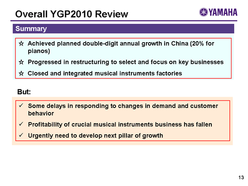 Yamaha Group Medium-Term Management Plan (April 2010 - March 2013)