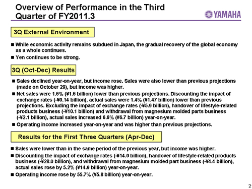 Overview of Performance in the Third Quarter of FY2011.3