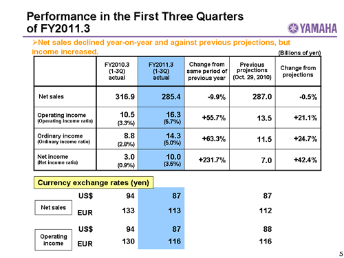 Performance in the First Three Quarters of FY2011.3