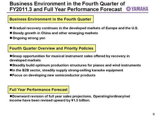 Business Environment in 4Q FY2011.3 and Full Year Performance Forecast
