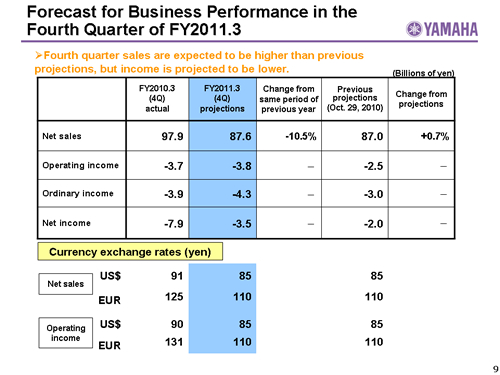 Forecast for Business Performance in the Fourth Quarter of FY2011.3