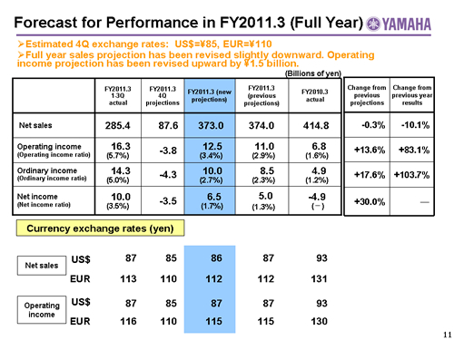 Forecast for Performance in FY2011.3 (Full Year)