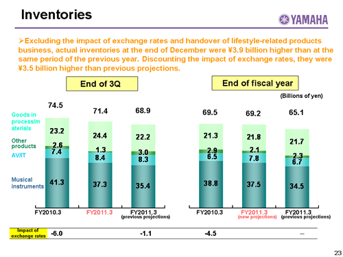 In this report, the divs forecast for the Company's future performance have been calculated on the basis of information currently available to Yamaha and the Yamaha Group. Forecasts are, therefore, subject to risks and uncertainties. Accordingly, actual performance may differ greatly from our predictions depending on changes in operating and economic conditions, demand trends, and the value of key currencies, such as the U.S. dollar and the euro.