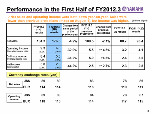 Performance in the First Half of FY2012.3