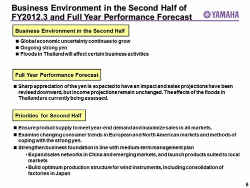 Business Environment in the Second Half of FY2012.3 and Full Year Performance Forecast