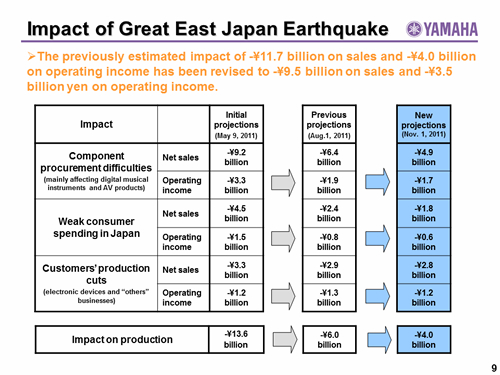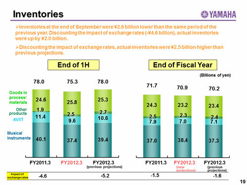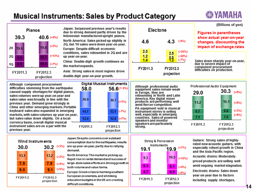 In this report, the divs forecast for the Company's future performance have been calculated on the basis of information currently available to Yamaha and the Yamaha Group. Forecasts are, therefore, subject to risks and uncertainties. Accordingly, actual performance may differ greatly from our predictions depending on changes in operating and economic conditions, demand trends, and the value of key currencies, such as the U.S. dollar and the euro.