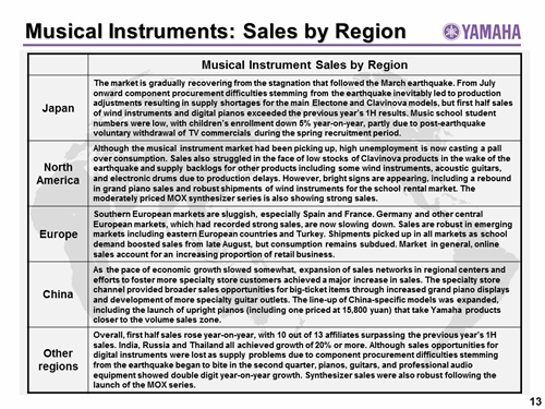 Musical Instruments: Sales by Region