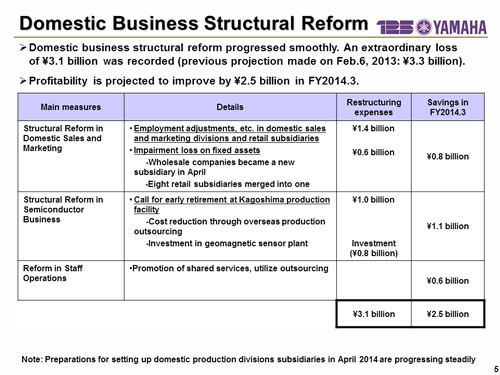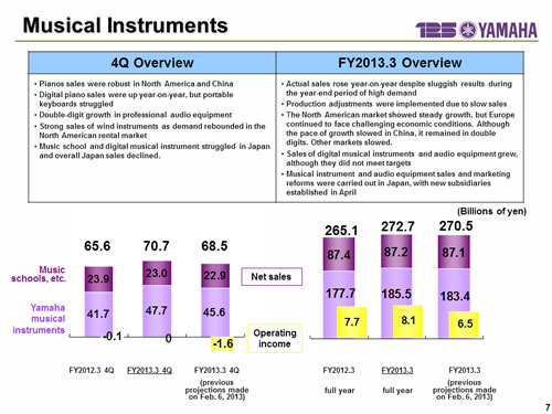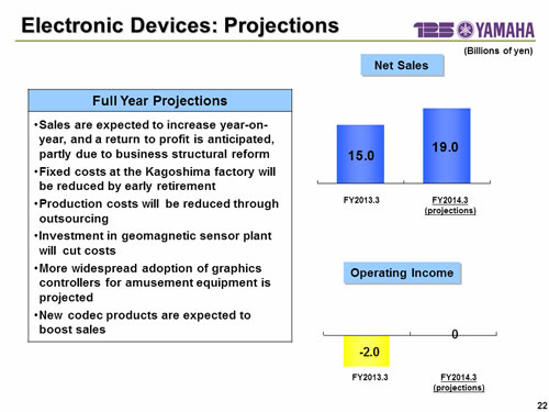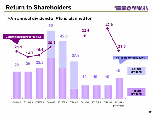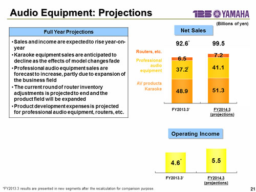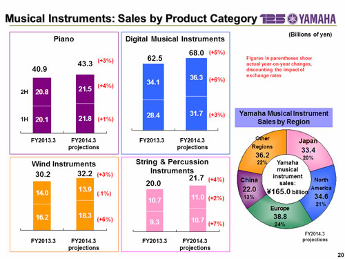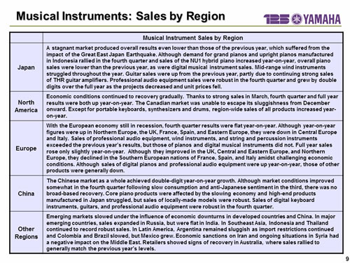 In this report, the divs forecast for the Company's future performance have been calculated on the basis of information currently available to Yamaha and the Yamaha Group. Forecasts are, therefore, subject to risks and uncertainties. Accordingly, actual performance may differ greatly from our predictions depending on changes in operating and economic conditions, demand trends, and the value of key currencies, such as the U.S. dollar and the euro.