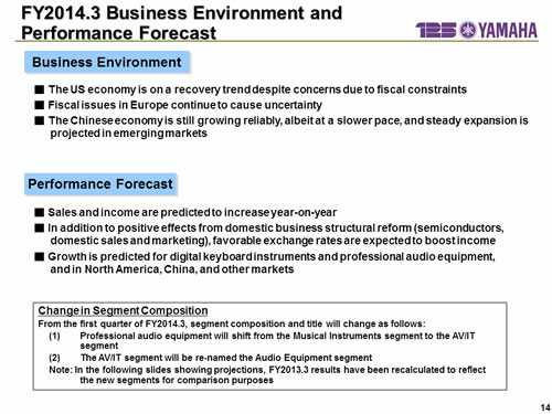 FY2014.3 Business Environment and Performance Forecast