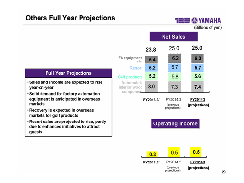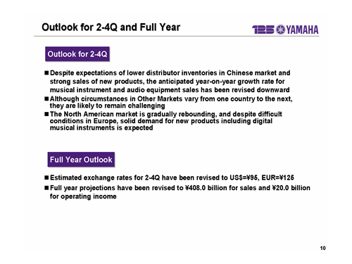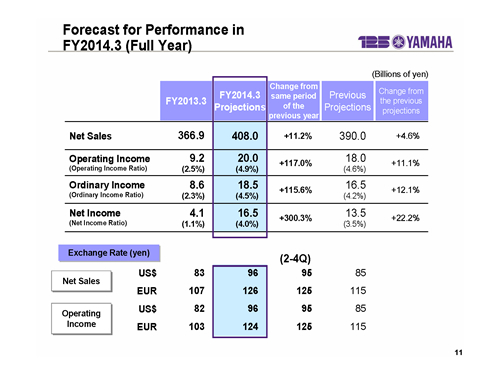 In this report, the divs forecast for the Company's future performance have been calculated on the basis of information currently available to Yamaha and the Yamaha Group. Forecasts are, therefore, subject to risks and uncertainties. Accordingly, actual performance may differ greatly from our predictions depending on changes in operating and economic conditions, demand trends, and the value of key currencies, such as the U.S. dollar and the euro.