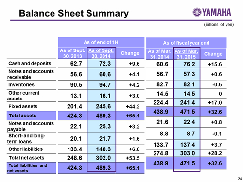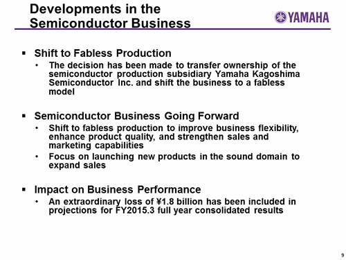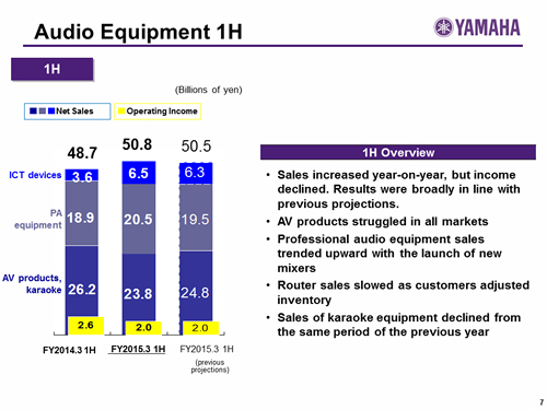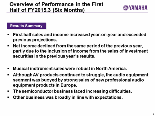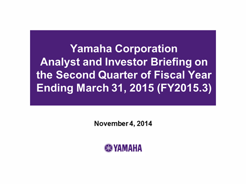 Yamaha Corporation Analyst and Investor Briefing on the Second Quarter of Fiscal Year Ending March 31, 2015 (FY2015.3)