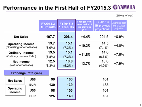 Performance in the First Half of FY2015.3